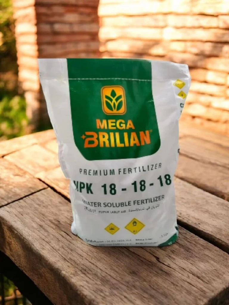 Mega Brilian adalah pupuk majemuk makro dan mikro yang diproduksi dengan teknologi modern dengan komposisi hara makro yang seimbang berbentuk powder mudah larut di dalam air (water soluble fertilizer). Sudah berizin resmi dari kementerian pertanian dan legal distribusinya di Indonesia.
